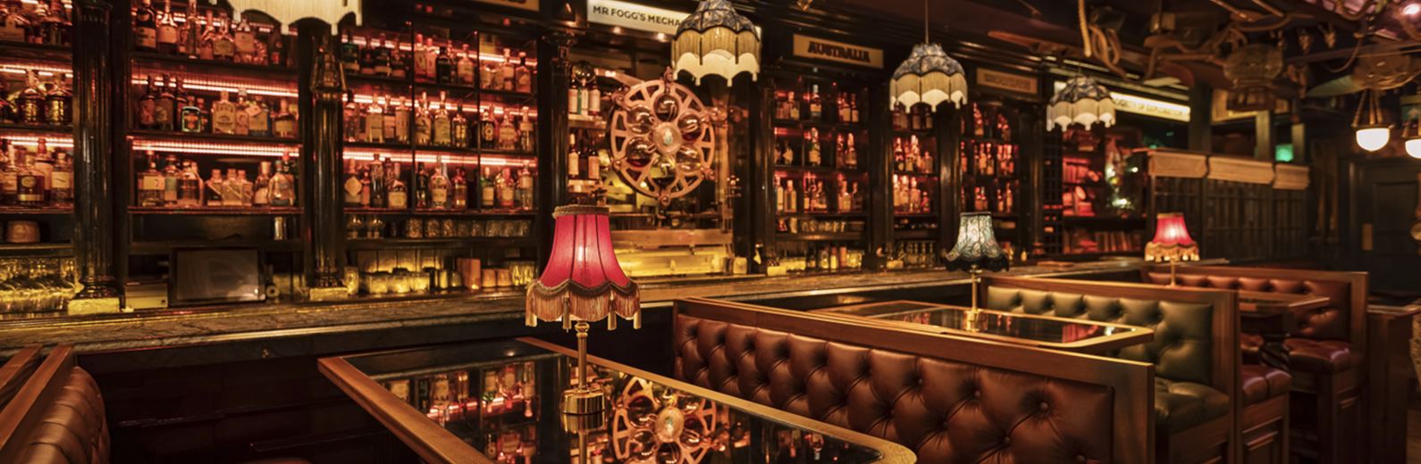 Let yourself be guided downstairs by the very helpful staff in uniform, to uncover this steampunk’s dream-bar of Mr Fogg’s. Inside you’ll find wood-panelled walls, vintage leather seating and shelves laden with artefacts from his supposed travels. Lots of the spaces here can be hired, including the Map Room filled with globes, travel books and chintzy armchairs… or the most impressive part, the Train Carriage – a life-size model of a Victorian steam train that has its own bar and overlooks the rest of the action. The drinks here are a little on the experimental side, with fan-dangled creations being created using all manner of devices, but it’s a great find and perfect for groups.