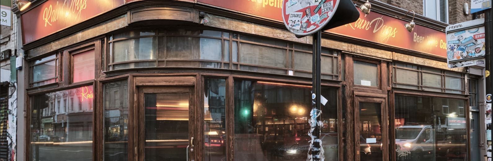 Perched at the top of Brick Lane, Rain Dogs is built around the concept of a “dive bar done well,” and it delivers on that promise. The interior is moody and pared-back, with sage green walls and tan leather seating that feels immediately lived-in and welcoming. Despite its rough-edged aesthetic, the space is carefully considered, with attention to detail evident in the textures, lighting, and layout throughout.