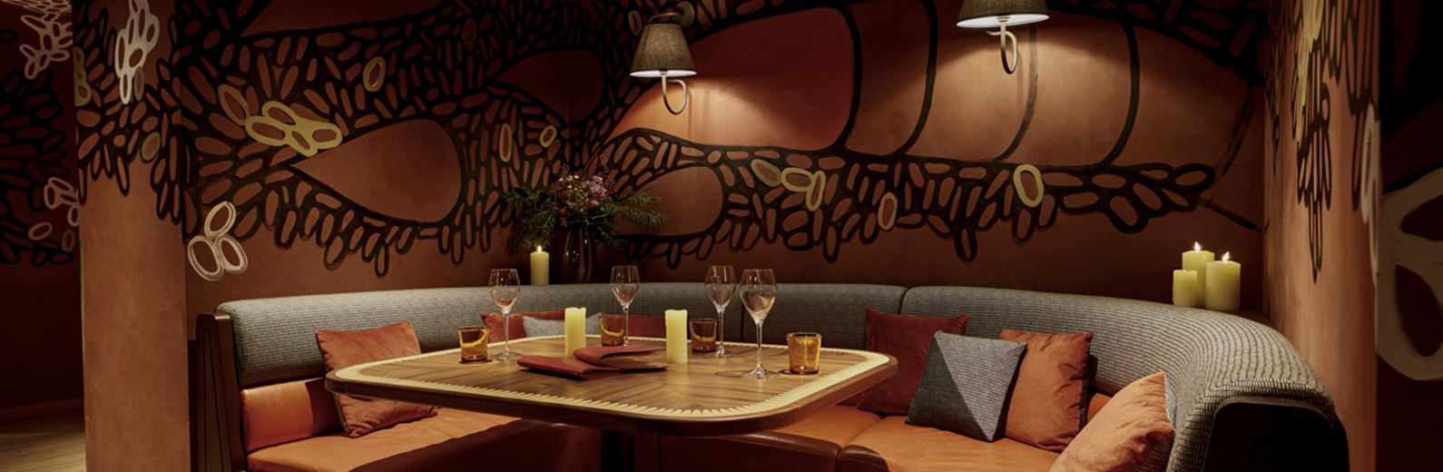 Tucked beneath Chelsea Barracks’ Campaner restaurant, The Clandesti is a warm, inviting hideaway that contrasts with the bright, Mediterranean feel of the floor above. The interior is rich and intimate, with burnt orange tones, painted murals, and copper accents creating a sense of warmth and character. Cosy banquette corners are arranged to encourage lingering, whether for quiet conversation or longer evenings with friends.